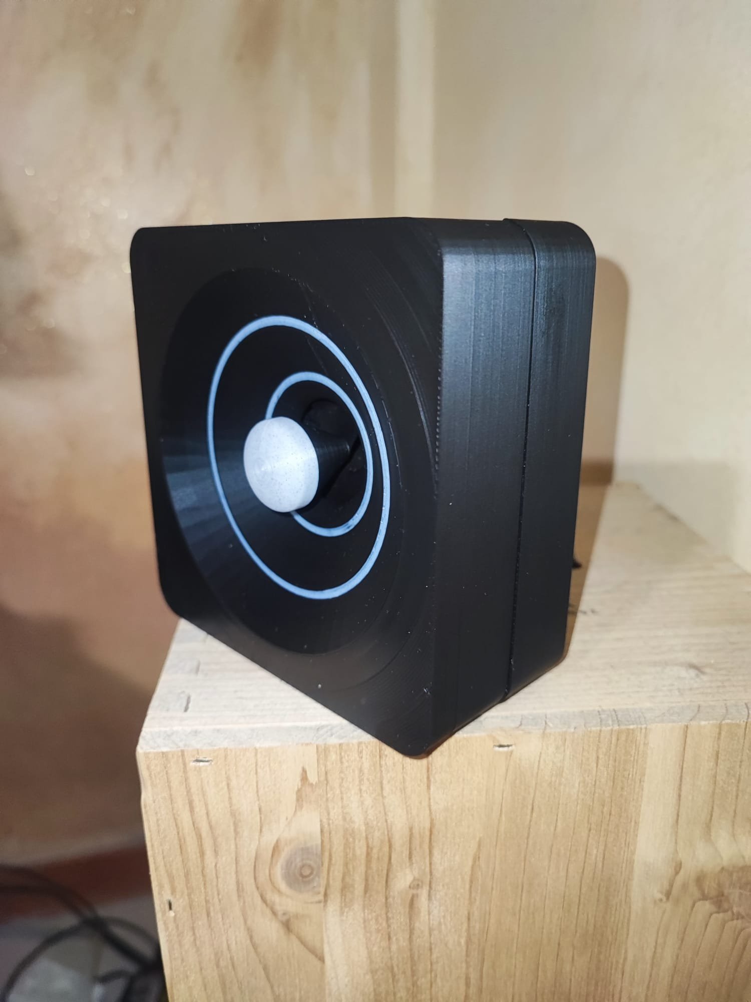 Realizzata tramite stampa 3D, unisce ricerca funzionale e cura estetica, trasformando un accessorio pratico in un oggetto dal carattere distintivo. Le geometrie studiate della camera acustica valorizzano il principio della risonanza, mentre il linguaggio formale rimane coerente con l’identità NATIVA: essenziale, moderna e personalizzabile.